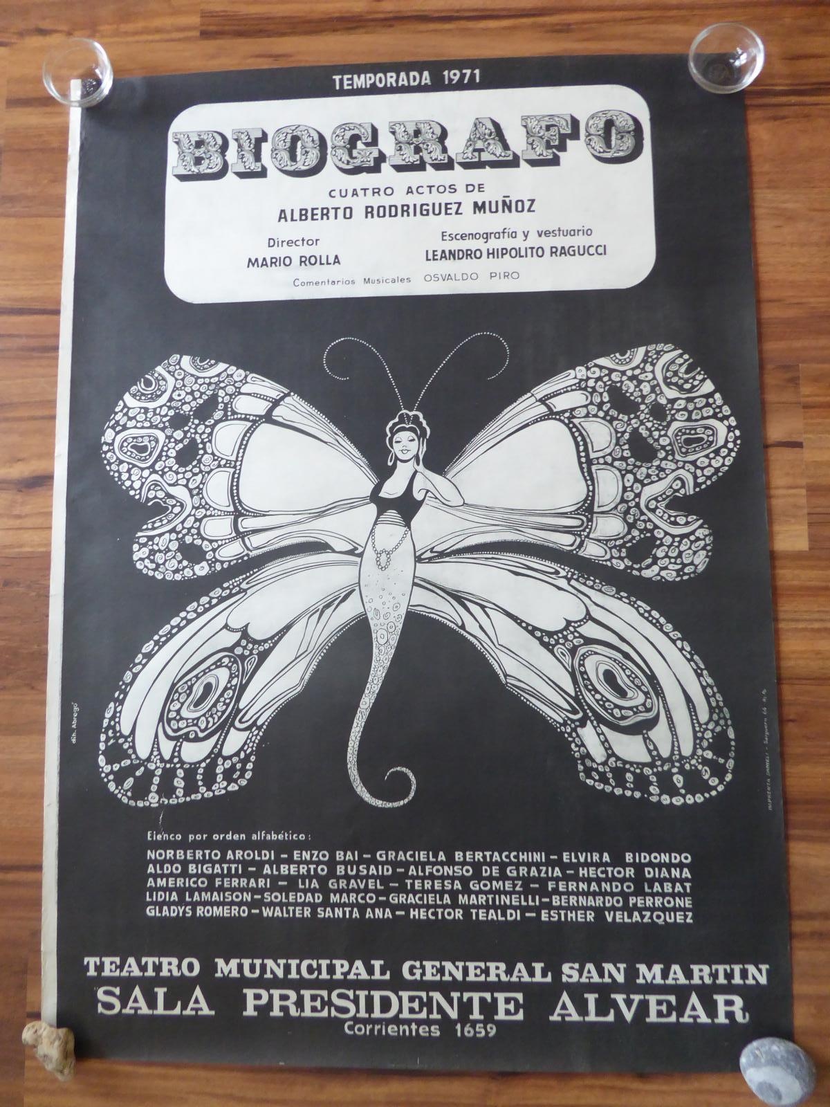 Poster Plakat Biografo Teatro San Martin Argentinien 1971, 104 x 74 cm